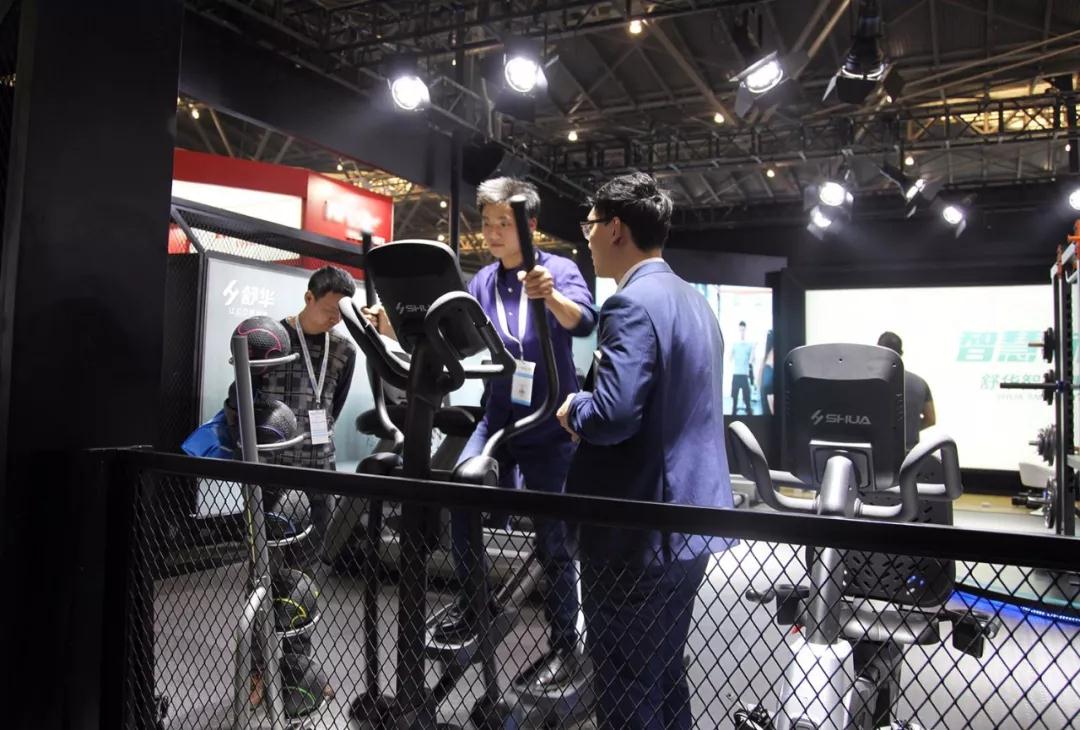 参展观众体验南宫NG28智能健身车