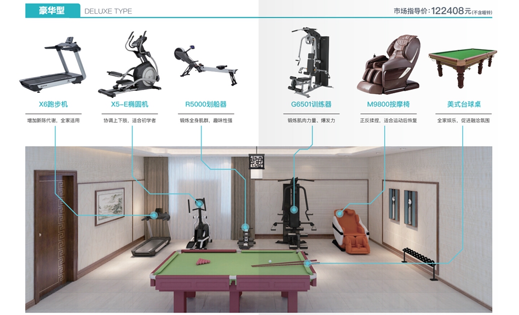 南宫NG28可为您的家庭打造一个私家健身房,提供全面的有氧训练、力量训练、功能性与柔韧性训练和理疗按摩器材,以及运动健康管理服务,让简单运动融入生活,帮助您的家庭实现健康目标。